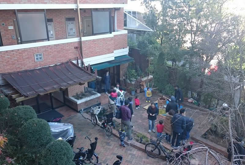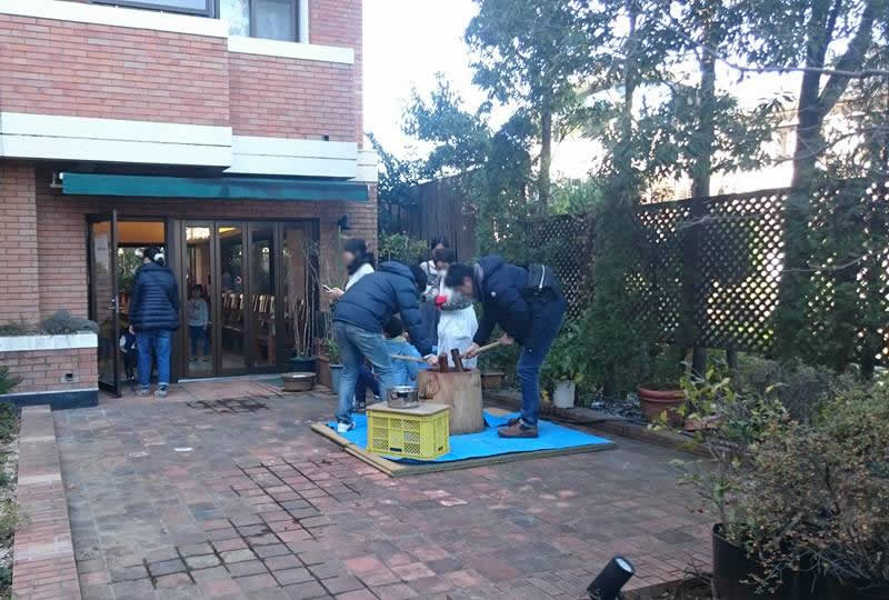 毎年恒例のサンミハレが管理するマンション中庭にて餅つき大会です! マンション「トライダント翠燿館」にて、行われる師走の行事で…